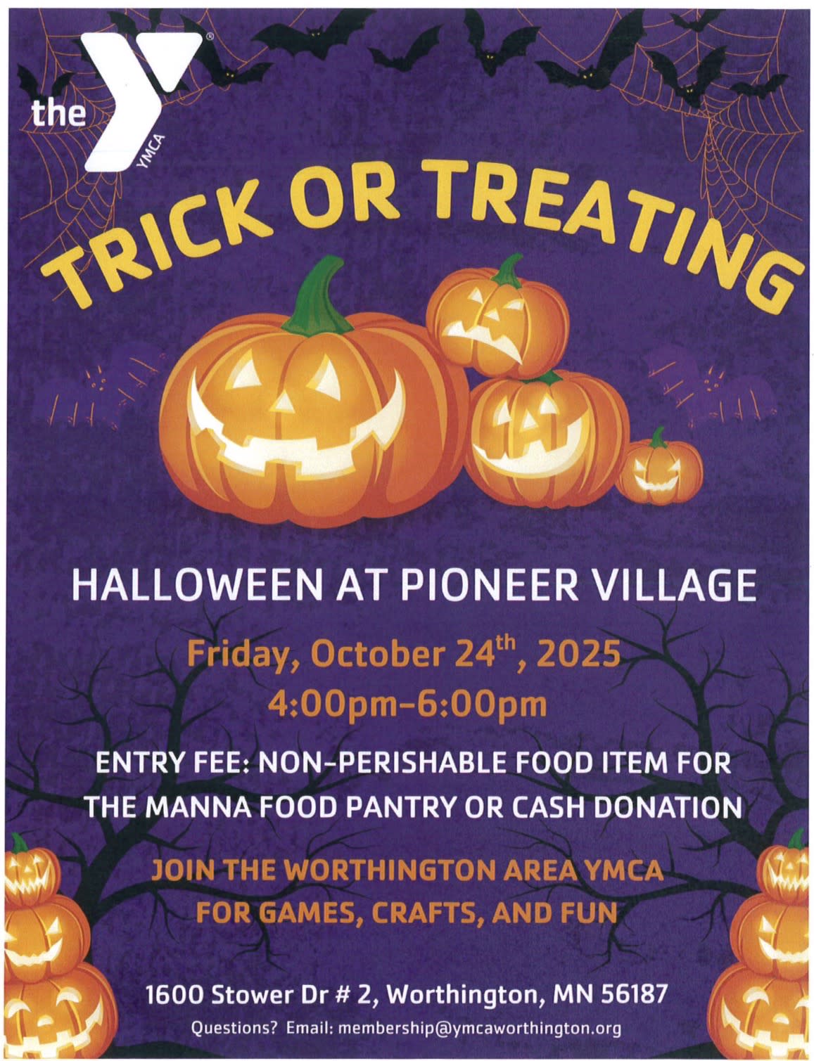 Trick or Treating event at pioneer village. An evening filled with treats, crafts, games, and fun!